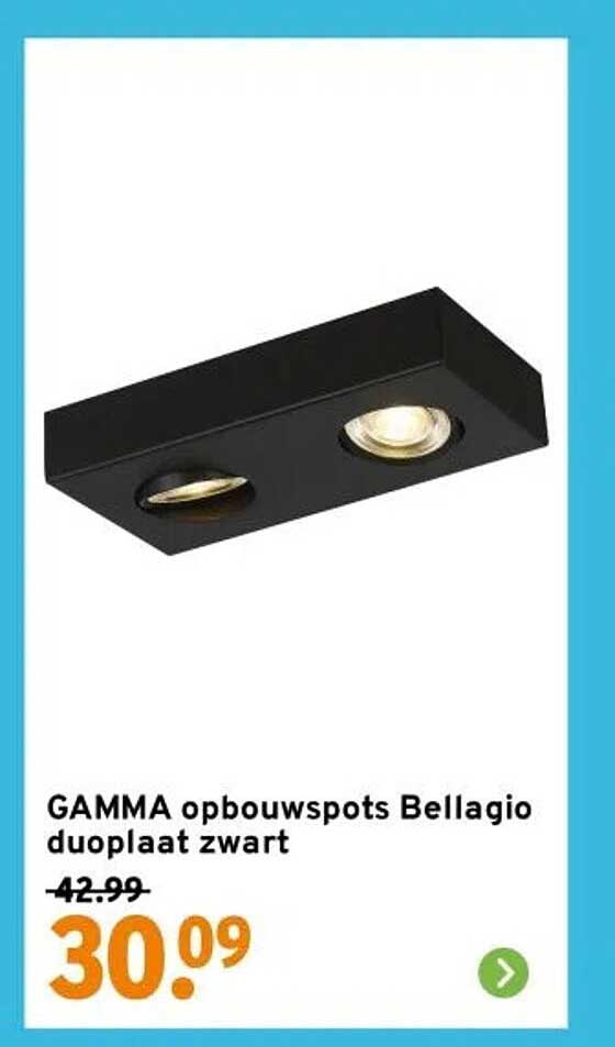 Bekijk de Gamma Opbouwspots Bellagio Duoplaat Zwart aanbieding bij GAMMA! Deze fantastische aanbieding is nu beschikbaar in de nieuwste GAMMA folder. Profiteer van deze kans en bespaar flink op je aankoop.