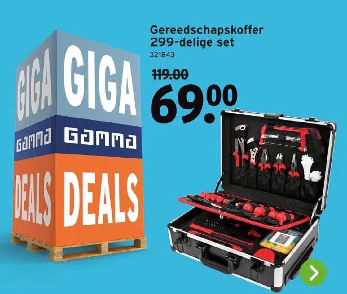 Bekijk nu de Gereedschapskoffer 299-delige set aanbieding in de GAMMA folder. Deze aanbieding is geldig van 19-09-2025 tot en met 21-09-2025.