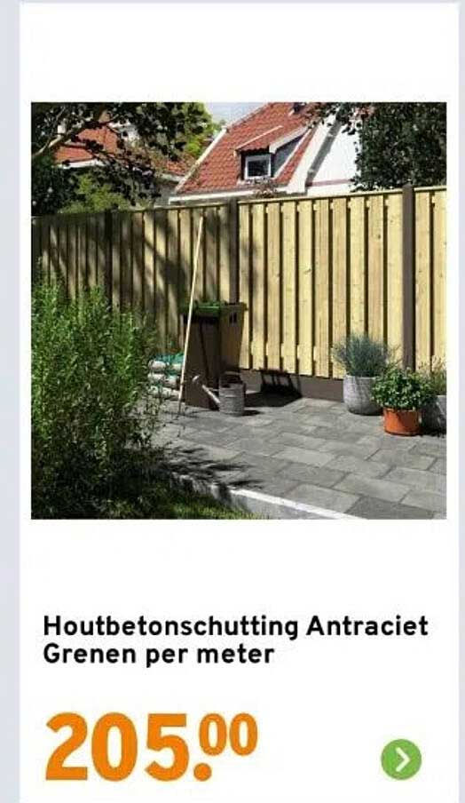 Bekijk de Houtbetonschutting Antraciet Grenen Per Meter aanbieding bij GAMMA! Deze fantastische aanbieding is nu beschikbaar in de nieuwste GAMMA folder. Profiteer van deze kans en bespaar flink op je aankoop.