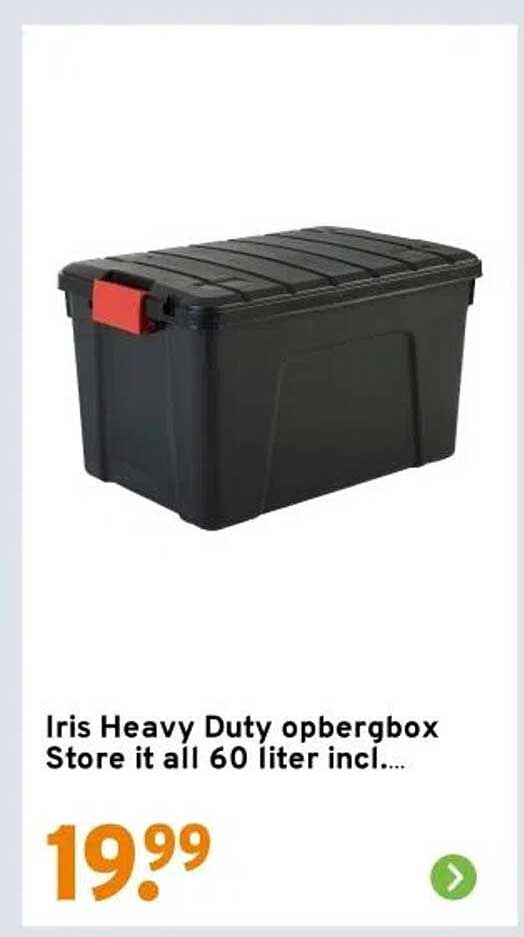Bekijk nu de Iris Heavy Duty opbergbox Store it all 60 liter incl... aanbieding in de GAMMA folder. Deze aanbieding is geldig van 24-10-2025 tot en met 26-10-2025.
