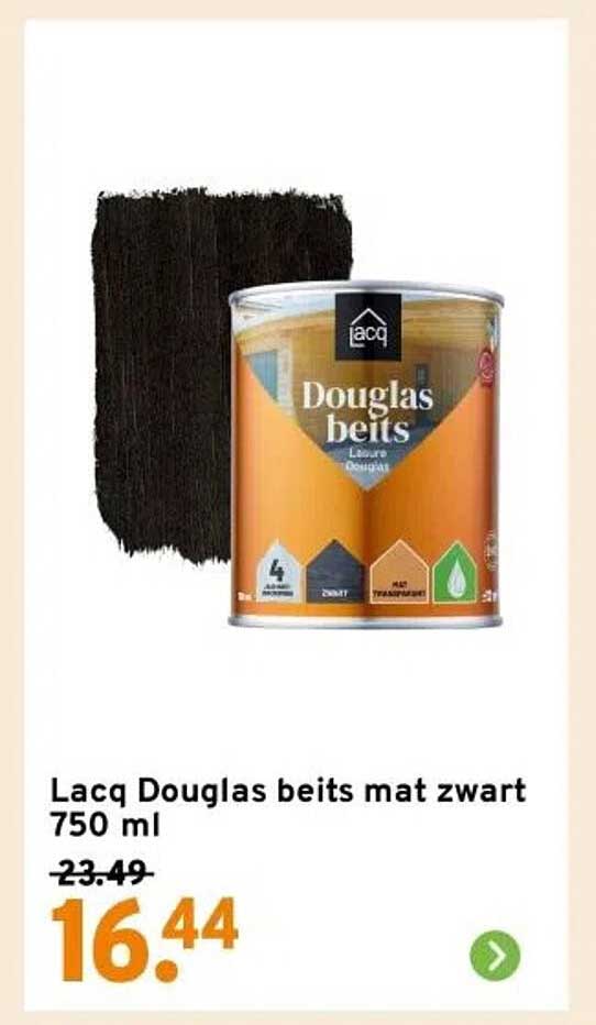 Bekijk nu de Lacq Douglas beits mat zwart 750 ml aanbieding in de GAMMA folder. Deze aanbieding is geldig van 09-06-2025 tot en met 15-06-2025.