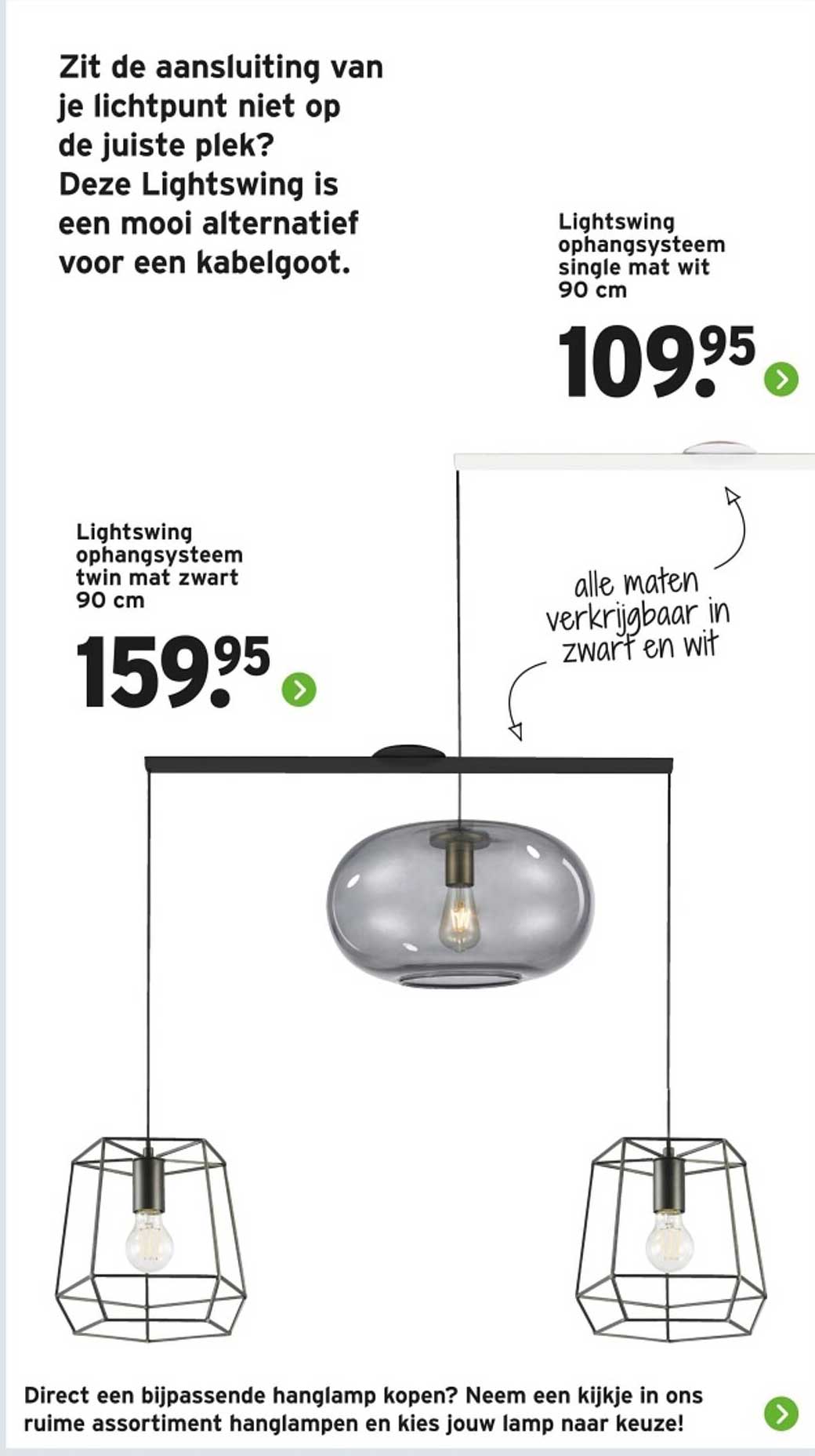 Bekijk de Lightswing Ophangsysteem Single Mat Wit 90 Cm aanbieding bij GAMMA! Deze fantastische aanbieding is nu beschikbaar in de nieuwste GAMMA folder. Profiteer van deze kans en bespaar flink op je aankoop.