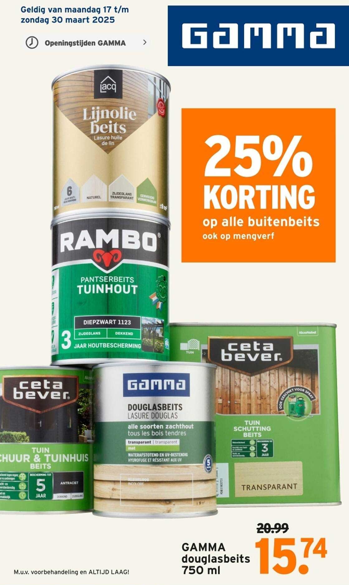 Lijnolie Beits Rambo Pantserbeits Tuinhout Gamma Douglasbeits Ceta Bever Tuin & Schuur Beits Ceta Bever Tuin Schutting Beits aanbieding bij GAMMA