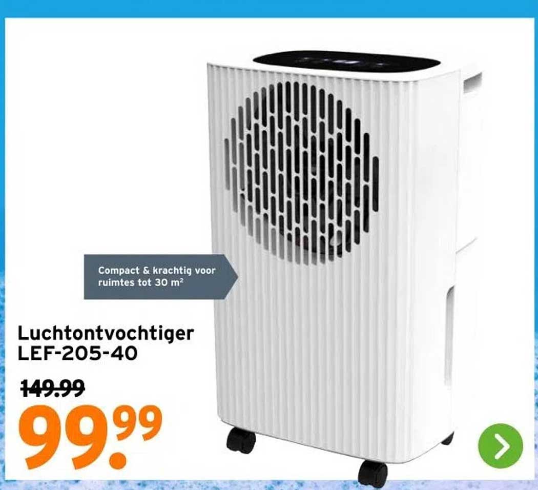 De normale prijs van de Luchtontvochtiger LEF-205-40 is €149,99, maar tijdens deze actieperiode kun je hem kopen voor slechts €99,99. Dat is een besparing van maar liefst €50! Dit maakt het voor iedereen toegankelijk om te investeren in een gezonder binnenklimaat. Grijp deze kans en verbeter jouw woonomgeving met deze geweldige aanbieding!
