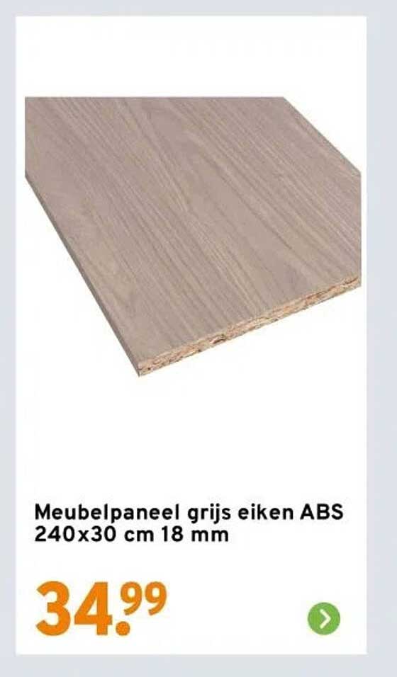 Bekijk nu de Meubelpaneel grijs eiken ABS 240x30 cm 18 mm aanbieding in de GAMMA folder. Deze aanbieding is geldig van 26-05-2025 tot en met 28-05-2025.