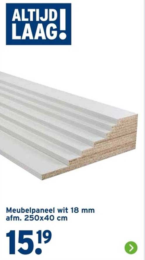 Bekijk de Meubelpaneel Wit 18 Mm Afm. 250X40 Cm aanbieding bij GAMMA! Deze fantastische aanbieding is nu beschikbaar in de nieuwste GAMMA folder. Profiteer van deze kans en bespaar flink op je aankoop.