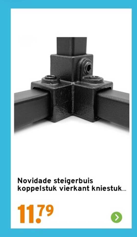 Bekijk de Novidade Steigerbuis Koppelstuk Vierkant Kniestuk aanbieding bij GAMMA! Deze fantastische aanbieding is nu beschikbaar in de nieuwste GAMMA folder. Profiteer van deze kans en bespaar flink op je aankoop.