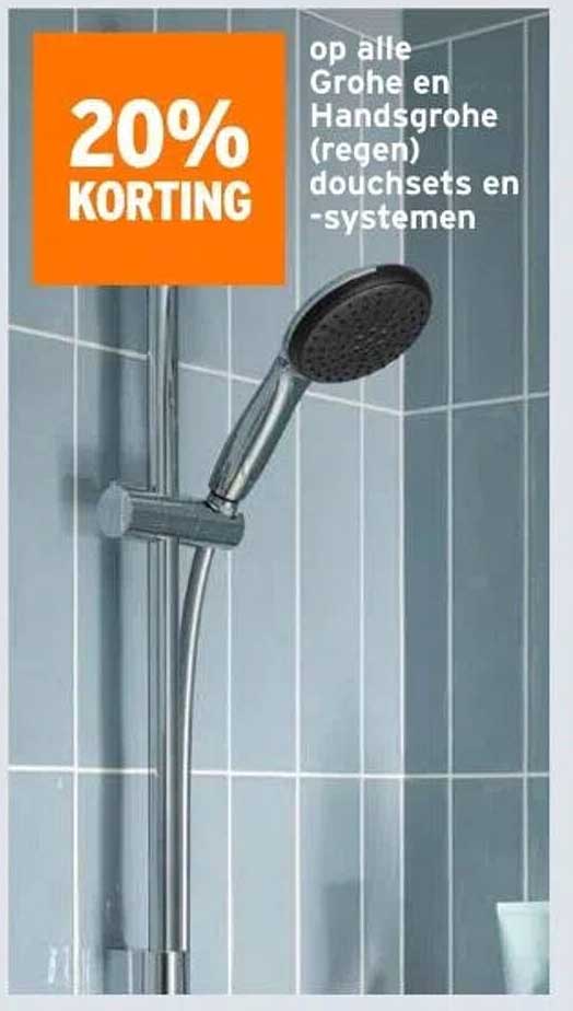 Bekijk nu de op alle Grohe en Handsproeier (regen) douchesets en -systemen aanbieding in de GAMMA folder. Deze aanbieding is geldig van 23-09-2024 tot en met 29-09-2024.