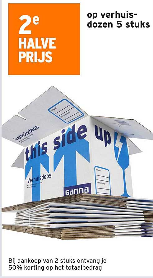 Met de aanbieding van de GAMMA krijg je de kans om 5 verhuisdozen te kopen voor een fantastische prijs. Normaal gesproken zou je meer betalen, maar nu kun je met de 50% korting op de 2e doos flink besparen. Dit maakt het een onweerstaanbare deal, perfect voor iedereen die binnenkort gaat verhuizen of een grote opruiming plant.