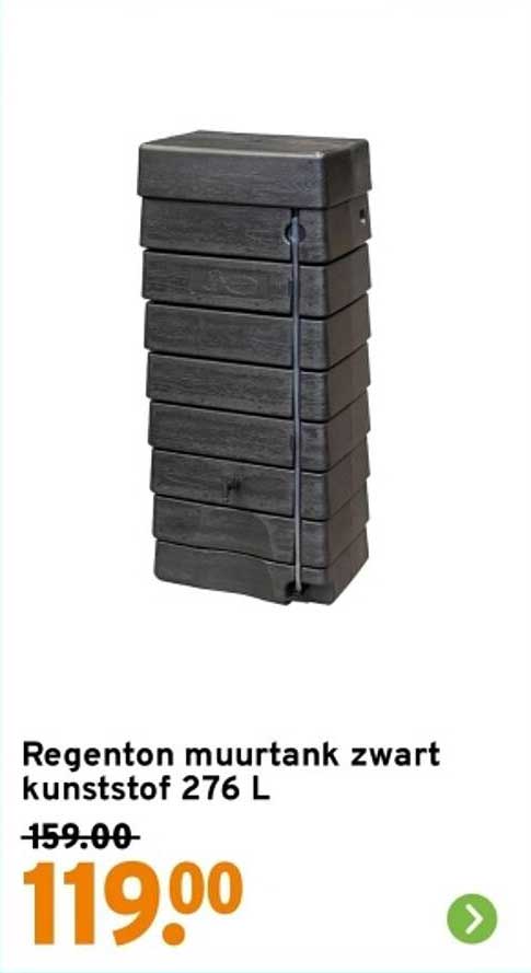 Bekijk de Regenton Muurtank Zwart Kunststof 276 L aanbieding bij GAMMA! Deze fantastische aanbieding is nu beschikbaar in de nieuwste GAMMA folder. Profiteer van deze kans en bespaar flink op je aankoop.