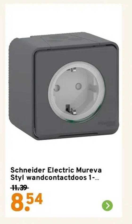Ben je op zoek naar een betrouwbare en stijlvolle wandcontactdoos? Dan heb je geluk! Op deze pagina vind je de Schneider Electric Mureva Styl wandcontactdoos met een scherpe korting. Deze aanbieding is geldig van 2025-05-19 tot en met 2025-05-25, dus grijp je kans voordat het te laat is!
