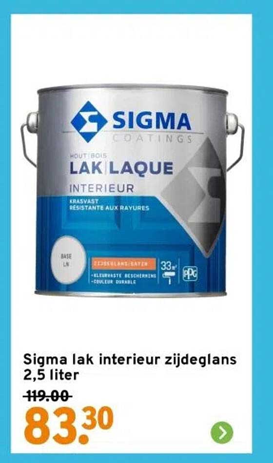 Bekijk de Sigma Lak Interieur Zijdeglans aanbieding bij GAMMA! Deze fantastische aanbieding is nu beschikbaar in de nieuwste GAMMA folder. Profiteer van deze kans en bespaar flink op je aankoop.