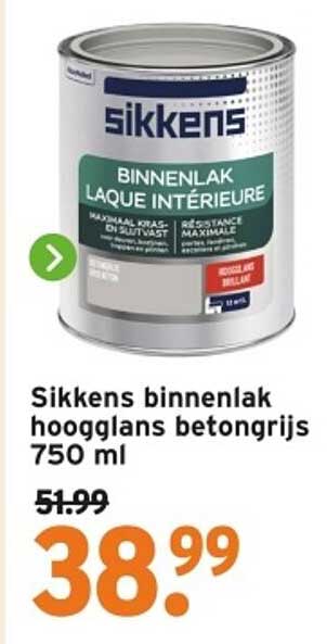 Bekijk de Sikkens Binnenlak Hoogglans Betongrijs aanbieding bij GAMMA! Deze fantastische aanbieding is nu beschikbaar in de nieuwste GAMMA folder. Profiteer van deze kans en bespaar flink op je aankoop.