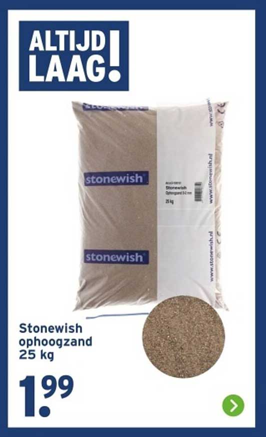 Ben je op zoek naar de perfecte basis voor je tuinprojecten? Kijk dan niet verder! De Stonewish ophoogzand aanbieding is precies wat je nodig hebt. Met een zak van 25 kg voor slechts €1,99, haal je niet alleen kwaliteit in huis, maar ook een zeer aantrekkelijke prijs. Dit maakt deze aanbieding tijdelijk een unieke kans om je tuin, terras of andere buitenruimtes een flinke upgrade te geven.