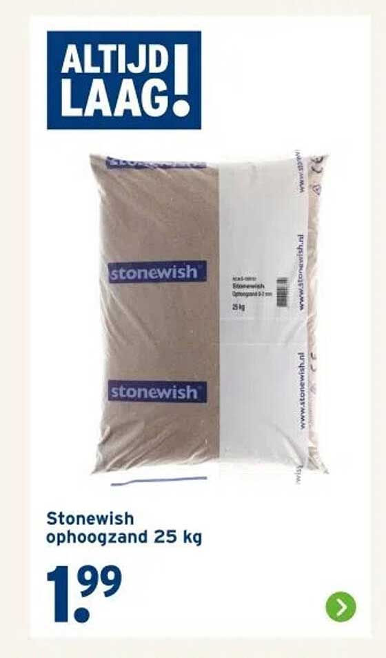 Voor slechts €1,99 is dit een aanbieding die je niet mag mislopen! Normaal kost een zak ophoogzand meer, en met deze prijs profiteer je van een extra voordeel. Vergelijk deze prijs met andere aanbieders en je zult zien dat je met Stonewish ophoogzand een uitstekende deal sluit.