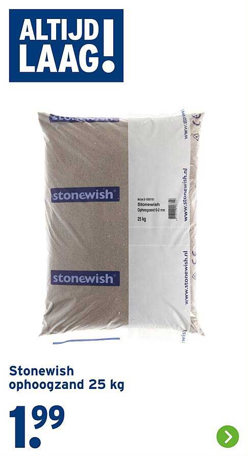 Bekijk nu de Stonewish ophoogzand 25 kg aanbieding in de GAMMA folder. Deze aanbieding is geldig van 11-08-2025 tot en met 17-08-2025.