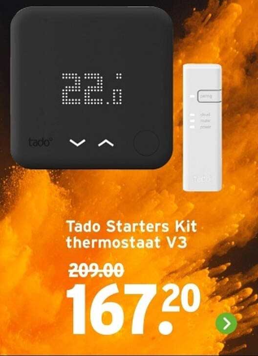 Ontdek de geweldige Tado Starters Kit Thermostaat V3 aanbieding in de nieuwste GAMMA folder. Naast deze aanbieding vind je nog veel meer aantrekkelijke kortingen. Je kunt de Tado Starters Kit Thermostaat V3 eenvoudig online bestellen via de GAMMA website of kopen in een winkel bij jou in de buurt.