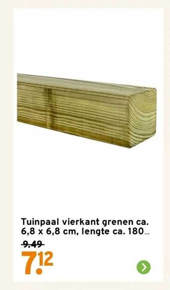 Bekijk nu de Tuinaal vierkant grenen ca. 6,8 x 6,8 cm, lengte ca. 180 cm aanbieding in de GAMMA folder. Deze aanbieding is geldig van 09-06-2025 tot en met 15-06-2025.