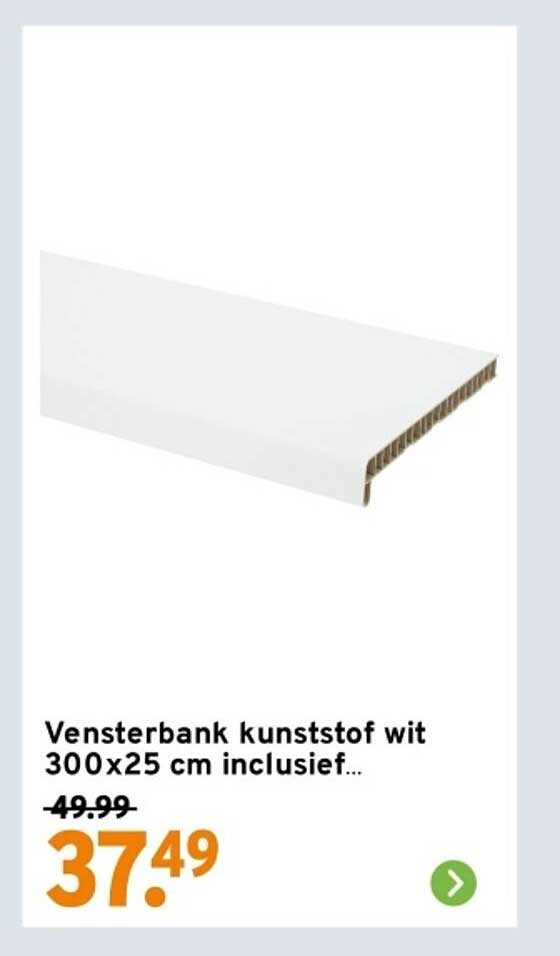Bekijk nu de Vensterbank kunststof wit 300x25 cm inclusief... aanbieding in de GAMMA folder. Deze aanbieding is geldig van 07-04-2025 tot en met 13-04-2025.