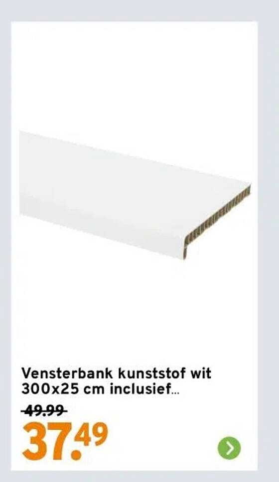 Bekijk nu de Vensterbank kunststof wit 300x25 cm inclusief... aanbieding in de GAMMA folder. Deze aanbieding is geldig van 26-05-2025 tot en met 01-06-2025.