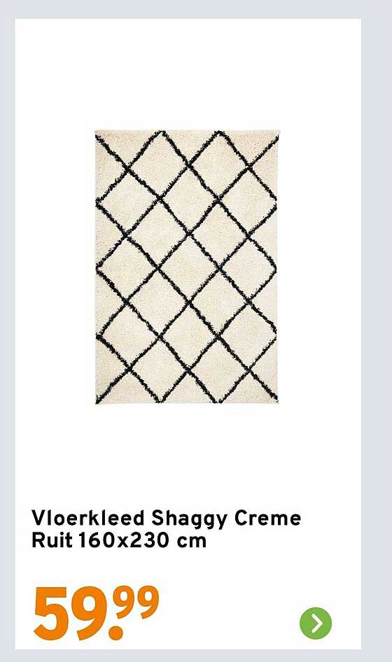 Bekijk nu de Vloerkleed Shaggy Creme Ruit 160x230 cm aanbieding in de GAMMA folder. Deze aanbieding is geldig van 22-04-2025 tot en met 23-04-2025.