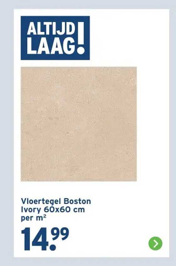 Bekijk nu de Vloertegel Boston Ivory 60x60 cm per m² aanbieding in de GAMMA folder. Deze aanbieding is geldig van 13-10-2025 tot en met 26-10-2025.
