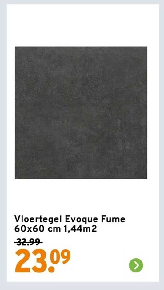 Bekijk de Vloertegel Evoque Fume aanbieding bij GAMMA! Deze fantastische aanbieding is nu beschikbaar in de nieuwste GAMMA folder. Profiteer van deze kans en bespaar flink op je aankoop.