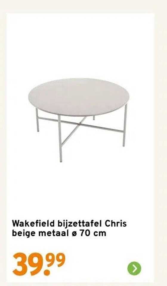Bekijk nu de Wakefield bijzettafel Chris beige metaal ø 70 cm aanbieding in de GAMMA folder. Deze aanbieding is geldig van 19-05-2025 tot en met 25-05-2025.