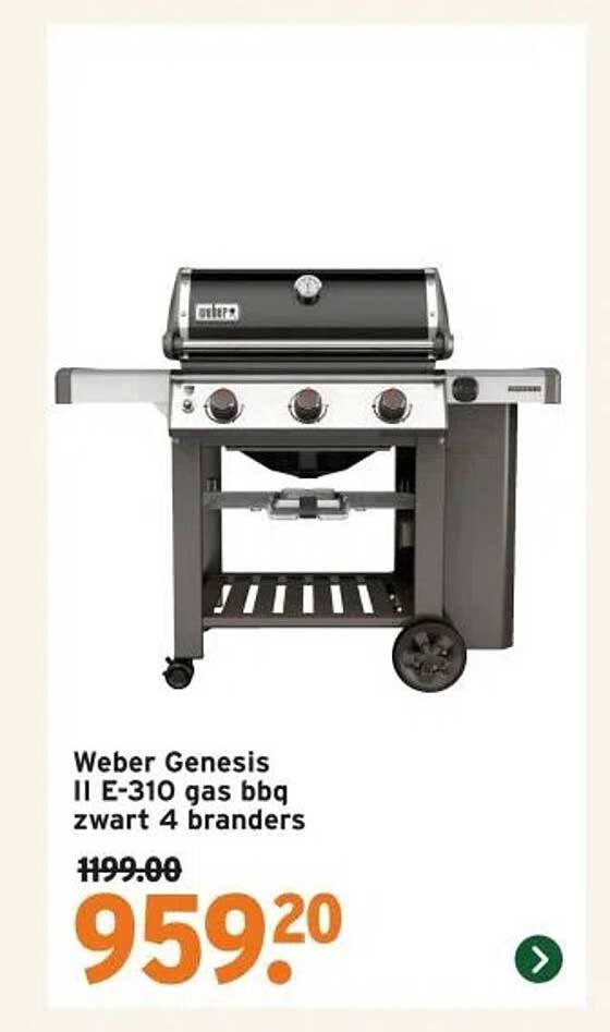 Bekijk nu de Weber Genesis II E-310 gas bbq zwart 4 branders aanbieding in de GAMMA folder. Deze aanbieding is geldig van 24-04-2025 tot en met 27-04-2025.