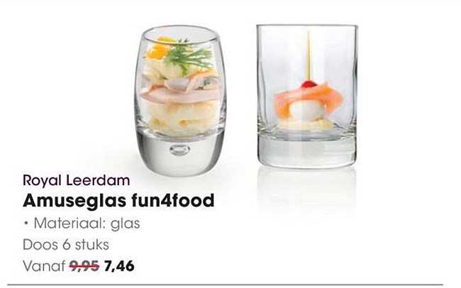 Maak van elke borrel of diner een feestje met het Royal Leerdam Amuseglas fun4food. Dit prachtige glas biedt de perfecte presentatie voor jouw creatieve hapjes en dranken. Of je nu een luxe maaltijd serveert of een casual borrel organiseert, deze set van zes amuseglazen zal indruk maken op je gasten. Het is de ideale keuze voor iedereen die houdt van stijl en functionaliteit.