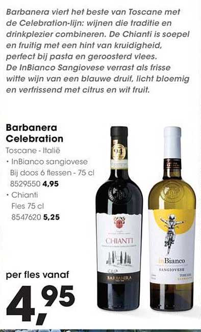 Duik in de heerlijke wereld van Toscane met de Barbanera Celebration wijnen, nu beschikbaar in een speciale aanbieding! Het is de perfecte gelegenheid om te genieten van authentieke Italiaanse smaken, waar traditie en drinkplezier hand in hand gaan. Deze aanbieding is ideaal voor wijnliefhebbers die willen ervaren wat Toscane te bieden heeft. Of je nu een diner met vrienden organiseert of gewoon wilt ontspannen met een goed glas wijn, deze wijnen passen perfect bij elke gelegenheid.