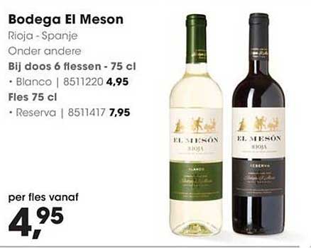 Welkom bij een fantastische aanbieding die je niet wilt missen! De Bodega El Meson wijnen zijn een waar genot voor elke wijnliefhebber en zijn nu verkrijgbaar in een speciale actie. Deze Spaanse wijnen, afkomstig uit de prachtige regio Rioja, bieden een uitstekende kwaliteit voor een betaalbare prijs. Of je nu een gezellige avond met vrienden plant of een diner organiseert, deze wijnen zijn de perfecte aanvulling.