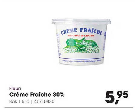 De prijs van slechts €5,95 voor 1 kilo Crème Fraîche is een uitstekende deal. Dit is een prijs die je niet wilt missen, zeker niet als je bedenkt dat de normale prijs vaak hoger ligt. Profiteer van deze tijdelijke aanbieding en vul je voorraad aan met deze heerlijke zuivel.
