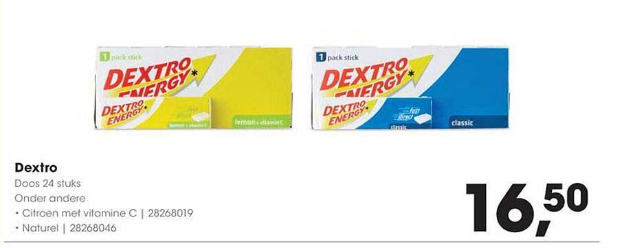 Ben je op zoek naar een snelle energieke boost? Kijk dan niet verder! De Dextro Energy sticks zijn perfect voor actieve dagen of lange uren werken. Met de aanbieding van HANOS haal je slechts voor €16,50 een doos van 24 stuks in huis. Deze heerlijke sticks zijn niet alleen praktisch om mee te nemen, maar bieden ook de energie die je nodig hebt om je dag goed door te komen.