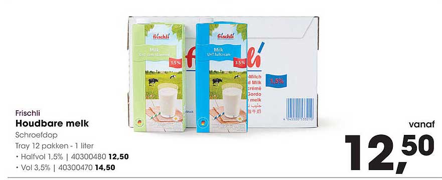 Heb je altijd behoefte aan verse melk, maar wil je ook het gemak van een lange houdbaarheid? Dan is de Houdbare melk van Frischli de perfecte keuze voor jou! Met deze aanbieding krijg je de kans om 12 pakken van de heerlijk romige melk in huis te halen, ideaal voor in de koffie, bij het ontbijt of gewoon als verkwikkende dorstlesser. Deze aanbieding is geldig van 6 tot en met 18 oktober 2025, dus mis het niet!