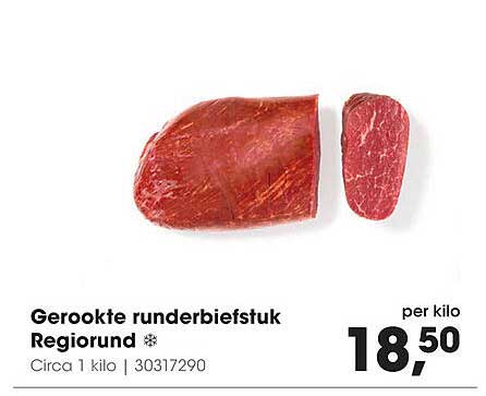 Ben je op zoek naar een bijzonder stukje vlees dat niet alleen heerlijk van smaak is, maar ook van hoogwaardige kwaliteit? Dan is de gerookte runderbiefstuk Regiorund een uitstekende keuze! Deze aanbieding is perfect voor liefhebbers van ambachtelijke producten en staat garant voor een culinaire ervaring.