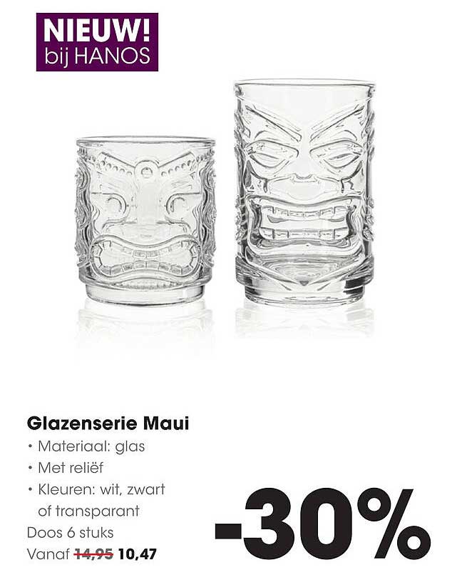 Heb je altijd al willen genieten van je favoriete drank uit unieke glazen? De glazenserie Maui is nu beschikbaar bij HANOS met een geweldige korting van 30%! Dit is dé kans om je feestjes een opvallende twist te geven. Voor een beperkte tijd kun je deze schitterende glazen aanschaffen voor slechts €10,47 per doos van zes stuks.
