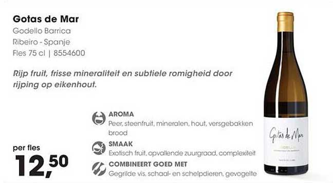 Ontdek de heerlijke Gotas de Mar, een Godello Barrica uit de prachtige Ribeiro-regio in Spanje. Deze wijn, beschikbaar in een fles van 75 cl, biedt een ongeëvenaarde combinatie van rijp fruit, frisse mineraliteit en een vleugje romigheid door de rijping op eikenhout. Perfect voor elke gelegenheid, van een diner met vrienden tot een romantisch etentje. Deze aanbieding is geldig van 2025-11-03 tot en met 2025-11-16, dus mis het niet!