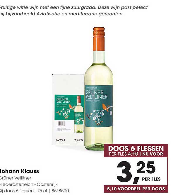 Bekijk nu de Grüner Veltliner aanbieding in de HANOS folder. Deze aanbieding is geldig van 06-10-2025 tot en met 18-10-2025.