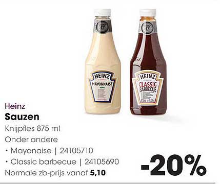 Ben je op zoek naar de perfecte sauzen voor jouw gerechten? Zoek niet verder! Op deze pagina vind je een geweldige aanbieding voor de geliefde Heinz Sauzen, die je smaakpapillen zeker zullen verrassen. Deze knijpflessen van 875 ml zijn ideaal voor iedereen die houdt van een goede smaak. Van romige mayonaise tot pittige classic barbecue, met deze sauzen maak je elk gerecht extra speciaal.
