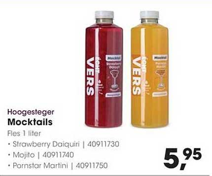 Ben jij op zoek naar een verfrissende en feestelijke drank zonder alcohol? Kijk dan niet verder! Op deze pagina vind je de heerlijke Hoogesteger Mocktails in een mooie fles van 1 liter. Met smaakvolle varianten zoals Strawberry Daiquiri, Mojito en Pornstar Martini haal je de sfeer van een feest direct in huis. Perfect voor een zomerse barbecue of een gezellige avond met vrienden. Deze aanbieding is geldig van 14 juli tot en met 27 juli 2025, waar wacht je nog op?