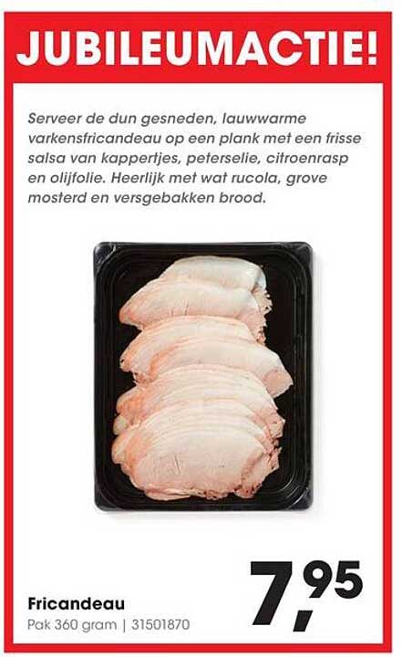 Met een prijs van slechts €7,95 is deze aanbieding een uitstekende keuze. Vergelijk het met de reguliere prijs en je zult zien dat je flink bespaart! Deze kwaliteit voor zo'n geweldige prijs maakt het nog aantrekkelijker om deze varkensfricandeau aan je ingrediëntenlijst toe te voegen.