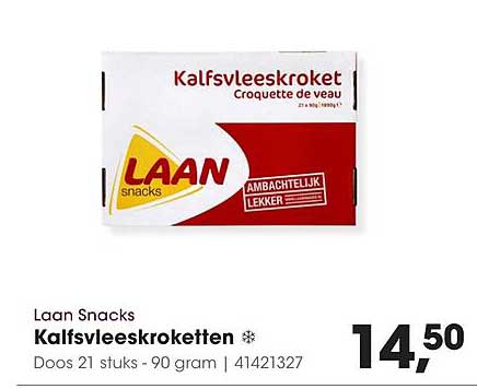 Met een prijs van slechts €14,50 is dit een kans die je niet wilt missen! Normaal gesproken kunnen de prijzen voor deze heerlijke kroketten hoger liggen, dus geniet van dit tijdelijke aanbod. Vergelijk deze aanbieding met andere producten en je zult zien dat de kalfsvleeskroketten van Laan Snacks een uitstekende keuze zijn voor een betaalbare prijs.