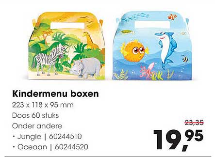 Maak de eetervaring van jouw kleintjes nog leuker met de kleurrijke kindermenu boxen van HANOS! Perfect voor verjaardagsfeestjes, kinderactiviteiten of gewoon een gezellig diner thuis. Deze boxen zijn niet alleen praktisch, maar brengen ook een glimlach op het gezicht van elk kind. Met een aantrekkelijke prijs van slechts €19,95 voor 60 stuks, is dit een aanbieding die je niet wilt missen!