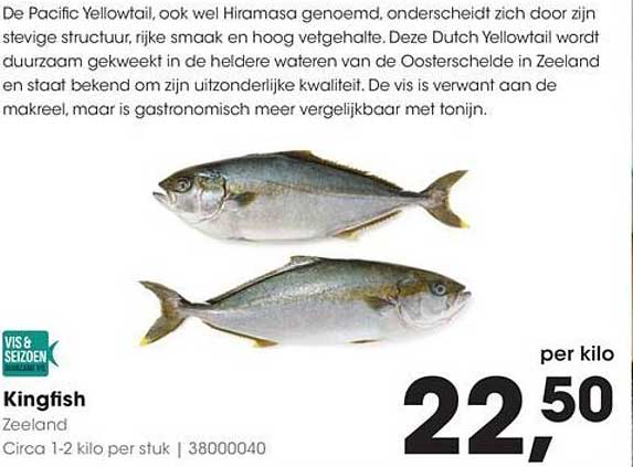 Deze premium Kingfish is nu beschikbaar voor slechts €22,50 per kilo. Gezien de hoge kwaliteit en de bijzondere smaak is dit een uitstekende prijs. Normaal gesproken zou je voor een dergelijke kwaliteit veel meer betalen, dus dit is een kans die je niet wilt missen!