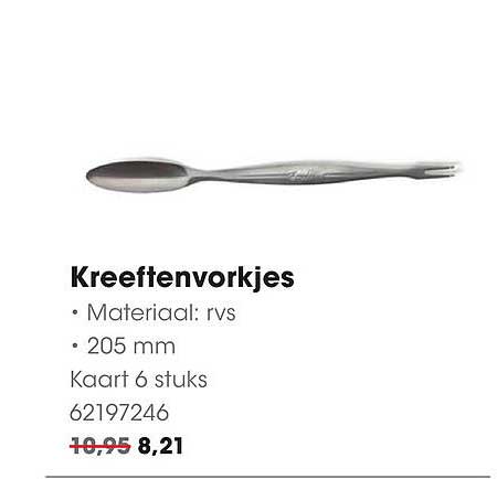 De reguliere prijs voor deze kreeftenvorkjes is €10,95, maar nu kun je ze aanschaffen voor slechts €8,21. Dit betekent een flinke besparing, waardoor je meer budget hebt voor andere heerlijke gerechten of misschien zelfs een fles champagne!