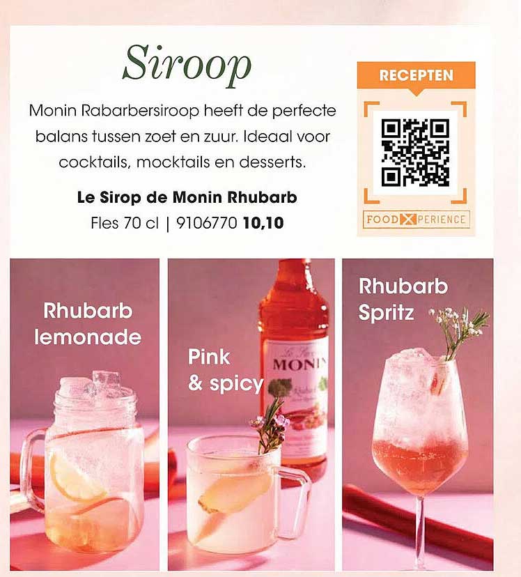 Monin Rabarbersiroop is niet zomaar een siroop. Het biedt de mogelijkheid om originele en smaakvolle creaties te maken. Of je nu een gezellige avond met vrienden hebt of een feestje organiseert, deze siroop zorgt voor een echte smaakexplosie. Maak een verfrissende rabarber lemonade voor een zonnige dag of probeer de 'Pink & spicy' cocktail voor een bijzondere smaakervaring.