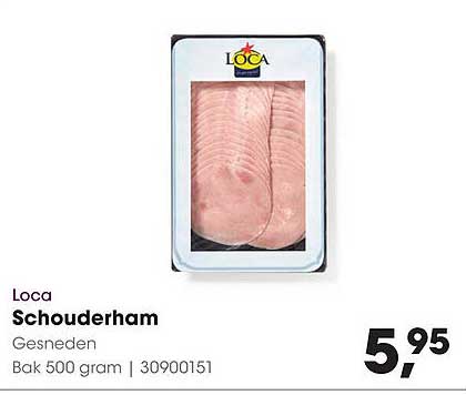 Ontdek de heerlijke Loca Schouderham, gesneden en perfect verpakt in een handige bak van 500 gram. Deze schouderham is ideaal voor op brood, in salades of als ingredient bij diverse gerechten. Van 24 maart tot en met 6 april kun je deze smakelijke ham voordelig aanschaffen. Dit is dé kans om jouw maaltijden een lekkere twist te geven!
