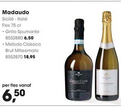 Ben je op zoek naar een sprankelende wijn die elke gelegenheid kan opvrolijken? Dan is de aanbieding van Madaudo precies wat je nodig hebt! Deze Italiaanse delicatesse, afkomstig uit Sicilië, biedt je een unieke smaakervaring voor een zeer aantrekkelijke prijs. Met de Grillo Spumante kun je jezelf en je gasten verwennen zonder te diep in de buidel te tasten.
