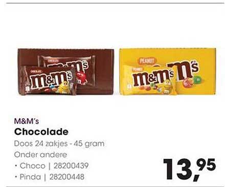 Ben jij ook zo dol op M&M's? Je kunt nu genieten van een geweldige aanbieding die je niet wilt missen! Bij HANOS krijg je de kans om een doos met 24 zakjes van deze heerlijke chocoladeproducten te bemachtigen voor een scherpe prijs. Dit is hét moment om je voorraad M&M's aan te vullen, perfect voor feesten, borrels of gewoon om jezelf mee te verwennen.